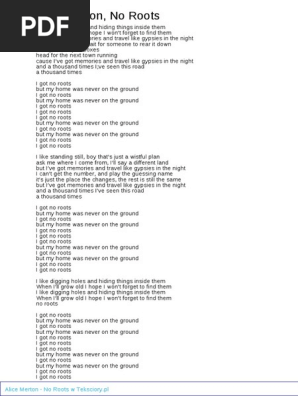 Alice Merton No Roots Rock Your Lyrics - alice merton i like digging holes and hiding things inside them when i grow old, i hope i won't forget to find them alice merton and a thousand times i've seen this road a thousand times.