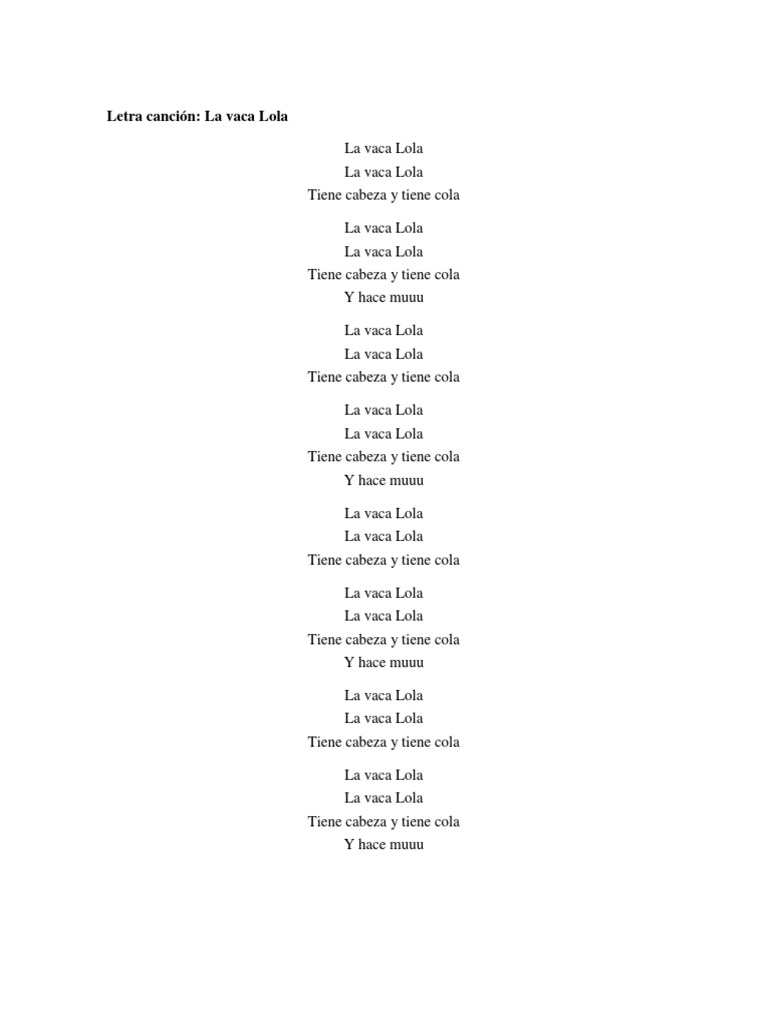 La Vaca Lola Letra Canción Infantil / Esta breve cancion es una de las preferidas de los mas pequenos (entre 2 y 4 anos). La Vaca Lola Letra Canción Infantil / Pinocho, pin pon, sus mejores canciones infantiles.