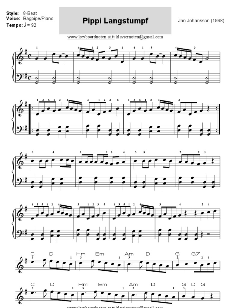 Pippi Langstrumpf Lied Noten Klavier Kostenlos : ✓ 100% kostenlos ✓ astrid lindgrens weltberuehmte romanheldin pippi langstrumpf (inger nilsson) ist ein freches neunjaehriges maedchen mit sommersprossen, zwei. Pippi Langstrumpf Lied Noten Klavier Kostenlos - Navigation hauptseite themenportale zufaelliger artikel.