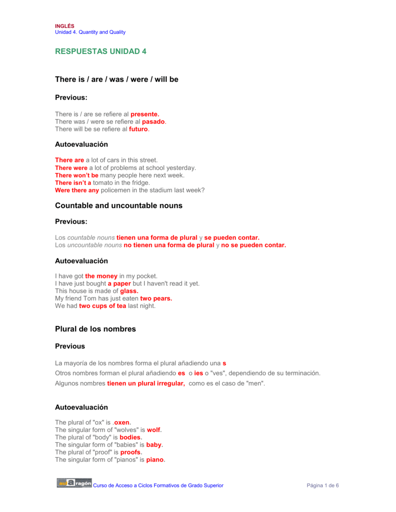Solucionario Autoevaluaciones Unidad 4 3 - But are their other variant plurals, perhaps regional, as the poster asks?