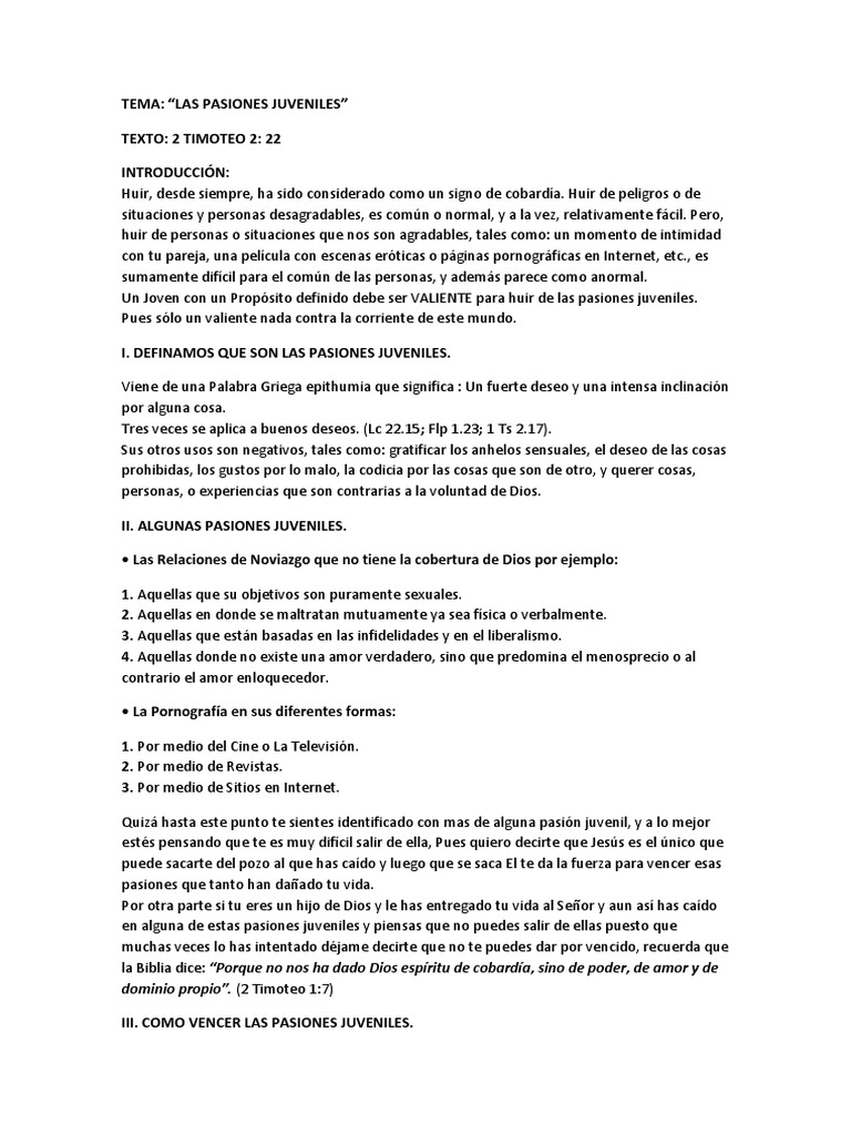 Que Son Las Pasiones Juveniles - Predicaciones y sermones cristianos de la iglesia tabernaculo biblico bautista el redentor en vancouver, canada. Que Son Las Pasiones Juveniles - Definamos que son las pasiones juveniles.