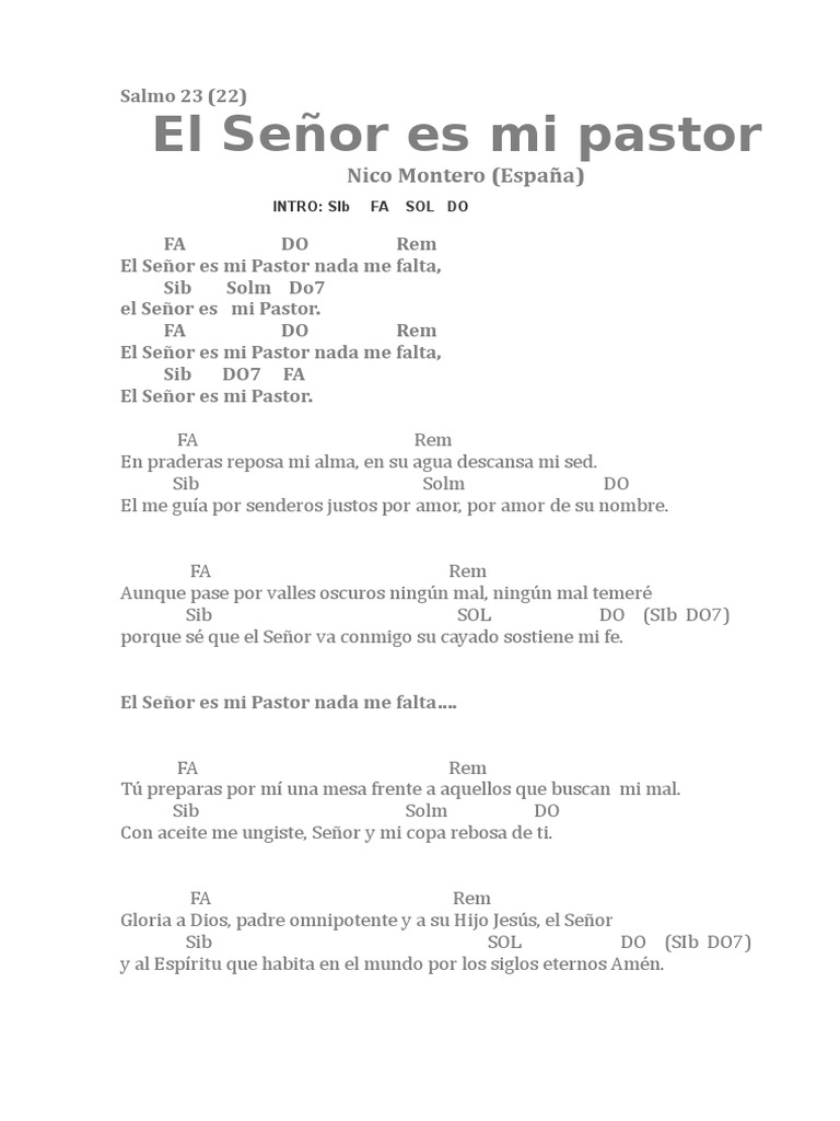 Salmo 23 Letra Y Acordes : Letras, acordes y tabs para guitarra, bajo y ukulele. Salmo 23 Letra Y Acordes : Fam dom descansare y me confortara.
